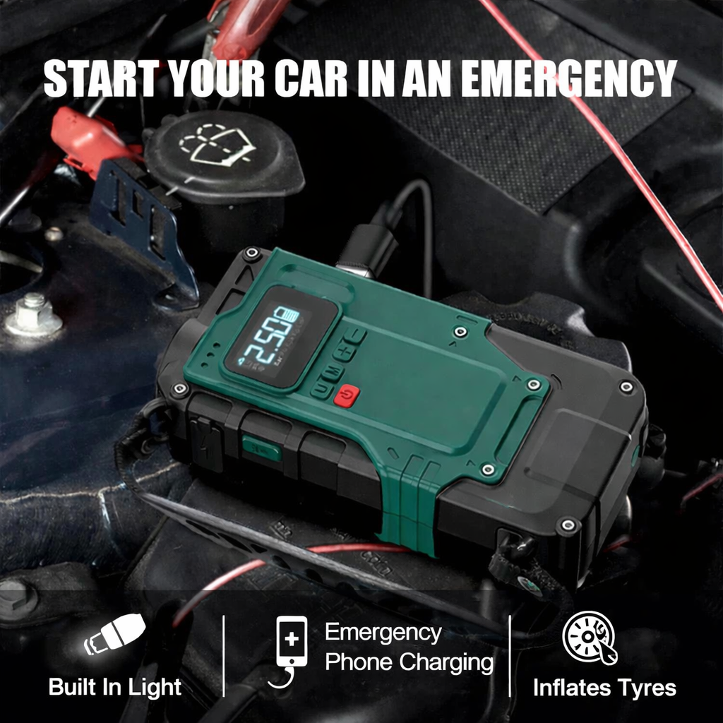 Yes. It’s capable of inflating 4WD-sized tyres and jump-starting engines up to 5.0L petrol or 3.0L diesel.